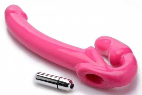 The powerful bullet vibe easily slips into the cavity of this strap on dong to give both the wearer and their partner 3 speeds and 4 patterns intense vibation. Flip through each function with the on-board power button and find which pattern suits you play style!