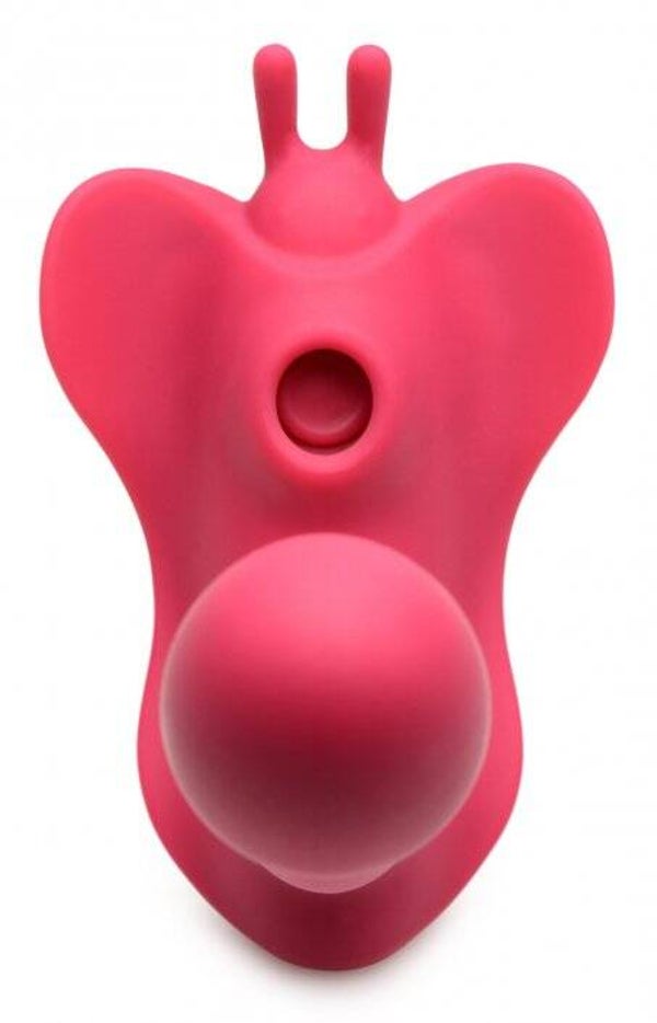 This vibrating and sucking clitoral stimulation toy will leave you with butterflies! Feel your heart flutter in excitement as you enjoy 10 sucking modes from the air stimulation technology gently teasing your clitoris. Insert the flexible shaft and feel the round tip press against your G-spot. Choose between 3 speeds and 7 patterns of vibration that buzzes through the shaft to your G-spot and clitoris for dual stimulation!